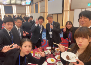 昼はみんなで湯島天神に参拝。教職員全員で、夢の成就を祈願しました。会場に戻ってきた後は、おいしい昼食を食べてリフレッシュ!!