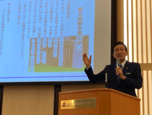 第1部は、学園理念や教育目的についての講話とワークショップを実施しました。渡邉理事長より、「子どもたちの幸せのためだけに学校はある」という教育理念と、「郁文館を日本の教育モデルにする」という目標についての講話があり、教職員一同が、学園全体のビジョンとゴールを再認識する場となりました。