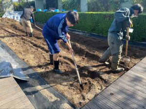 本校の農業研究会が行う農作業は、一般的な苗植え体験とは異なり、土を耕すところからスタートする本格的なものです。