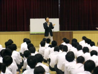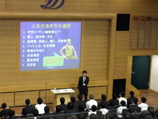 理事長講座:生徒たちに向けて、自らも起業家である理事長から「起業」に関する熱いレクチャーをしています。(詳しい様子はこちらをご覧下さい)