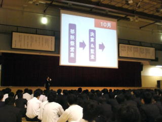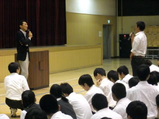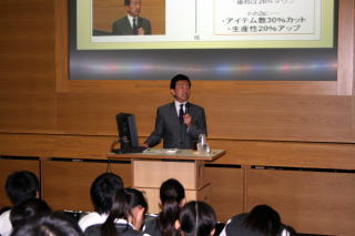 起業体験発足会:起業体験への取り組みを始めるにあたり、株式会社ワタミの桑原社長から「理念の大切さ」、「チームの大切さ」についてレクチャーをいただきます。(詳しい様子はこちらをご覧下さい)