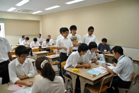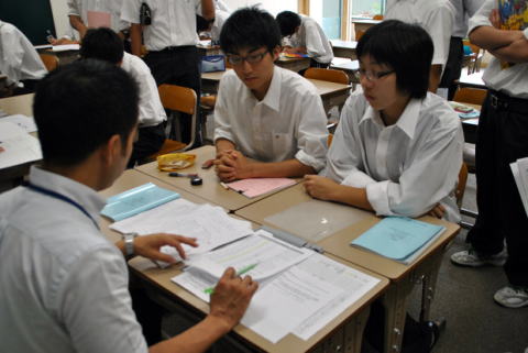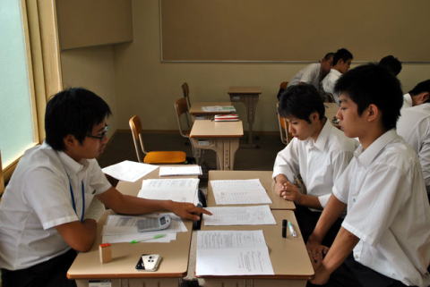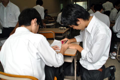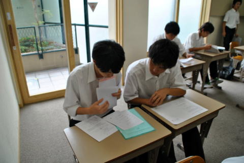 生徒たちは当初、書類をもらっても難しい表情でそれを眺めていました。