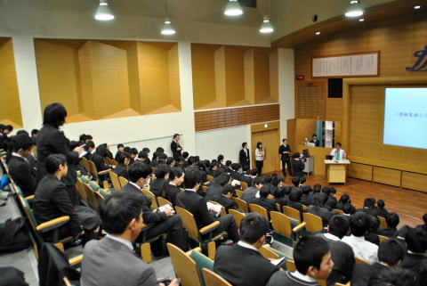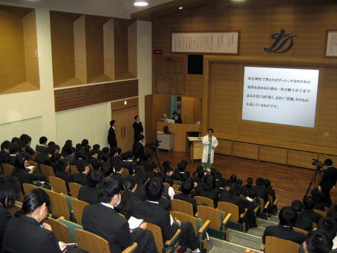 最後の質疑応答では「妊婦の方が男性の産婦人科医に診察を受ける際の気持ちについて」や「iPS細胞について、今後の医学にどのように影響するのか」など、夢を追う生徒たちの真剣な質問に対して、森山先生は1つ1つ丁寧に答えて下さいました。