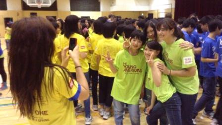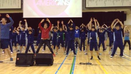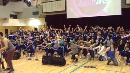 このプログラムは、3年生の時に留学を控えた新中学2年生と、他学年から選考された希望生徒の合計170名が参加しました。このプログラムの目的は、歌やダンス、英会話を上達させることではありません。みんなで1つのショーを作り上げるという目的に向かうなかで、ヤングアメリカンズの歌や踊りが好きという情熱に影響され、子どもたちが自分のカラを破っていきます。さらに、ヤングアメリカンズたちは、ショーの中で生徒たちにソロパートなどの輝ける場所を与えます。ヤングアメリカンズに助けられながら、自分の思いをショーの中で表して、表現することへの自信をつけていきますそして、一人一人が違った個性を持っていることを認め、自分とは違った他人を大切にすることを学ぶことが出来ます。それに加えて、多少英語が通じなくても、一緒に活動ができるという体験をして、留学への自信をつけて欲しいという思いもあります。