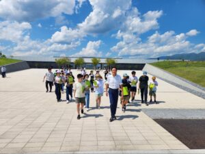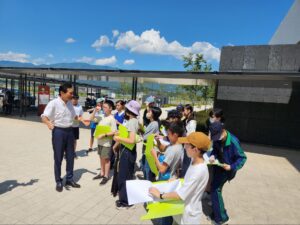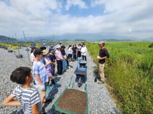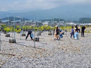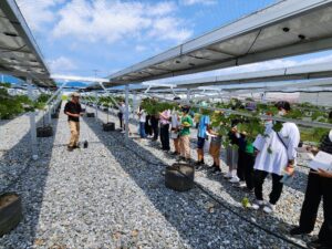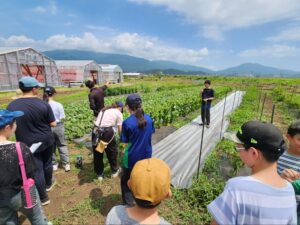 最終日は、『オーガニックランド』で過ごしました。葡萄畑のソーラーシェアリングの説明や堆肥の施肥などを通して、循環型農業について学び、お昼は、地元の食材を使用したバーベキューを食べ、「エネルギー・食料・環境」がどうあるべきかSDGsの観点から考える学習になりました。