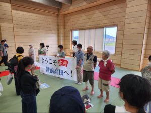 午後は、陸前高田にある『長洞元気村』に移動しました。そこで、震災による被害を受けたお宅を訪問し、当時の状況を聞きました。震災の時どのような行動すべきかをゲーム形式で考えることで、想定に囚われず最善を尽くして率先避難者となることが、自らの命を守る行動に繋がるということを学びました。さらに、陸前高田の特産品である「わかめ」の芯抜き体験もさせていただき、生徒たちの良いお土産ができました。