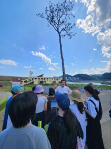 民泊でお世話になった方々との別れを惜しみながら、午後のプログラムがスタートしました。渡邉校長先生のガイドでめぐる『奇跡の一本松』ツアーです。校長先生の「7万本あった高田松原を含め、田畑も家も店も全て流されてしまった中で一本だけ残った松の木、これこそ奇跡だ。」という話を真剣に聞く生徒たちの姿が印象的でした。