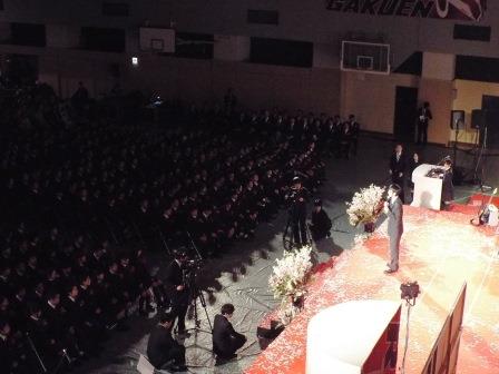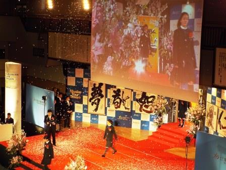 新入生たちは、レッドカーペットが敷かれた校門を、これから始まる新しい学校生活に胸を膨らませて歩いていました。