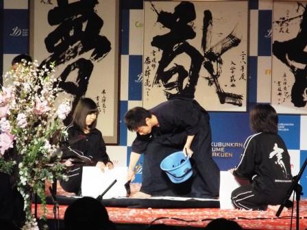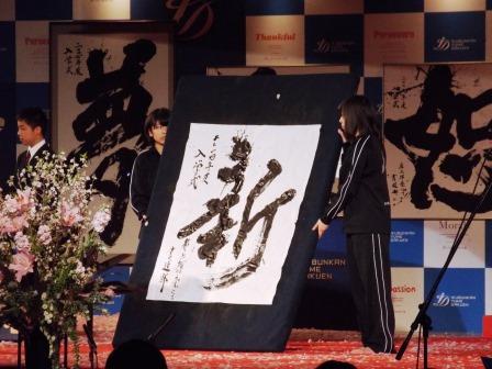 郁文館夢学園では、今年もブラスバンド部の生演奏の中、毎年全国大会の常連でもある書道部の席上揮毫によって漢字一文字が書かれました。今年の漢字は“新”です。