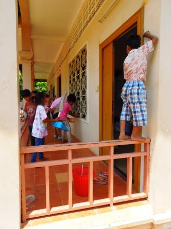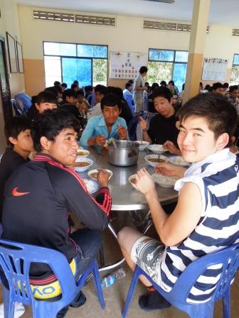 このカンボジア研修がスタートして以来、毎年訪問交流をさせていただいているのは、公益財団法人 School Aid Japan の運営する孤児院『夢追う子どもたちの家』です。今回も、私たちの訪問に備えて様々な準備をしてくださり、とても温かく迎えていただきました。郁文館の生徒たちも、前半は、園の子どもたちと日々の作業を一緒に行い、持参したカレー食材を共に調理し、皆でカレーを食しました。