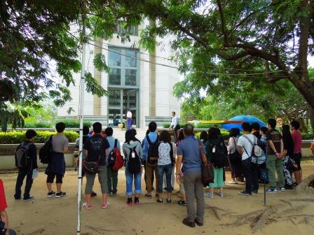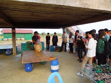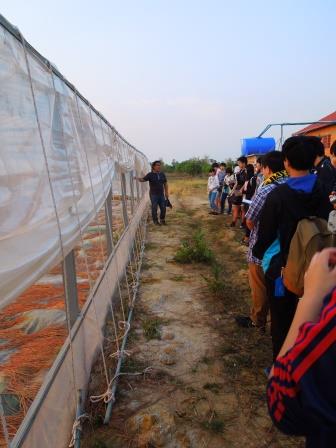 孤児院での交流を終え、生徒たちはSAJファームに向かいました。ファームでは、カンボジアの地で農業をすることの意義や難しさなどについてお話いただきました。短い滞在時間ではありましたが、事前に学習してきた知識や情報と実際に見聞きする現状を比較し、多くの質問を生徒たちはファームのスタッフの方に投げかけておりました。そうした質問にもひとつひとつ丁寧にお答えいただき、生徒たちにとっては大変有意義な時間となりました。