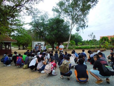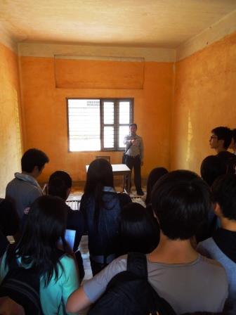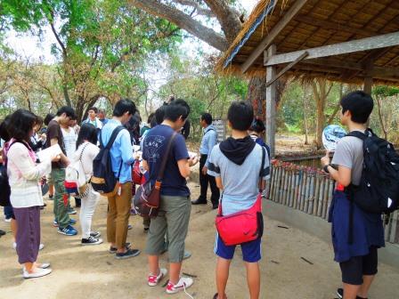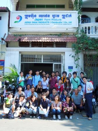 プノンペンに戻り、カンボジアの辛い歴史と向き合う半日です。ポルポト政権下のカンボジアの国民がどれほど苦しい思いをしてきたかは、生徒たちも事前学習である程度学んできています。しかし、「キリングフィールド」「トゥールスレン博物館」をカンボジアの現地ガイドさんの生々しいお話とともに見学する経験は、子どもたちに多くの「問い」を投げかけ、心に深く突き刺さったことでしょう。 午後は、現在のカンボジア経済について学ぶ企業訪問です。今回は『Japan Farm Products』という日系企業を訪問させていただきました。日本の農産物をアジア圏で商品として展開するために、カンボジアの地で農作物を生産し、ブランディングをして付加価値をつけ、販売している企業です。まだ起業して間もない会社ですが、その経営方針や戦略は、アジア圏で経済活動をするためのアイディアや手法が多く盛り込まれており、生徒たちはメモをとって熱心に会社の方のお話を聞いていました。