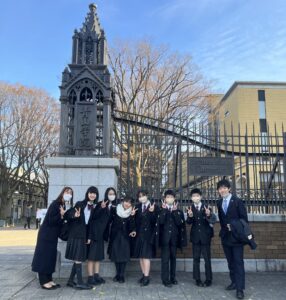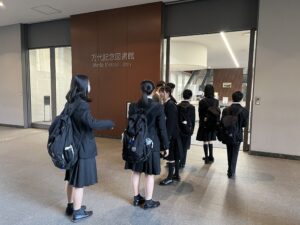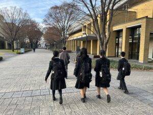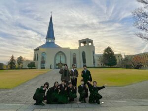 みんな初めての大学見学に、目をキラキラさせていて、「こんな広い教室で授業を受けるんだ!」「大学のど真ん中にチャペルがある!芝生もあるんだ!」などワクワクしながら二人から説明を受けていました。
