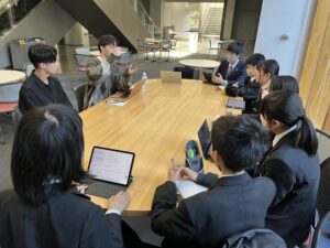 郁文館の生徒は、大学生がどんな活動を行っているのか興味津々で、たくさんの質問が飛び交いました。