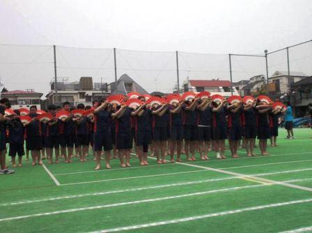 本校では、学校行事は生徒たちが主人公になる舞台だと考えております。この体育祭も、体育祭実行委員という生徒たちの委員会を中心に企画、運営がされています。この2日間の体育祭のために、2ヶ月以上も前から準備をし、当日は裏方として全ての運営を行いました。この実行委員の頑張りがなければ、全校生徒・教員・保護者の感動はありませんでした。本当によくやってくれました。