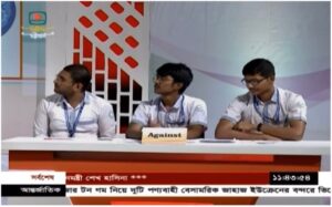 日々取り組んでいることを実際に試すために、バングラデシュテレビが主催する「第1回全国英語ディベート大会」にNDMSCの生徒たちが出場しました。