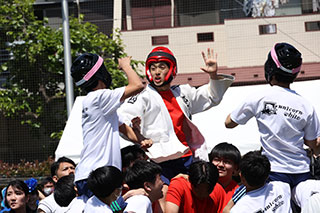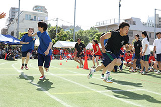 郁文3大イベントの1つ目「体育祭」。毎年5月に開催されます。テーマは「一生懸命はカッコイイ!」。中学1年生から高校3年生までが縦割りで4つの団に分かれ競います。全校生徒が全力を出し尽くし、フィナーレの閉会式で盛り上がりは最高潮に達します。