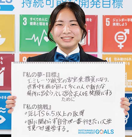 『エミレーツ航空の客室乗務員になり、世界中を飛び回って多くの人や新たな場所に出会う、そして出会った人々を笑顔にする』