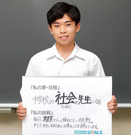 毎日、笑顔で人に接することに挑戦。そして、先生になるために必要なことを調べています